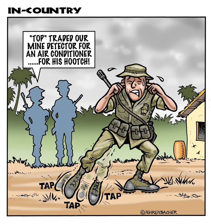 Phil enlisted in the Army in 1965 where you served for years in Vietnam. He became a graphic designer and has worked for the state of Oregon for 26 years. He retired in 2003 and started the Cartoon "In-Country". The cartoons reflect his experiences during his tour of duty in South Vietnam.