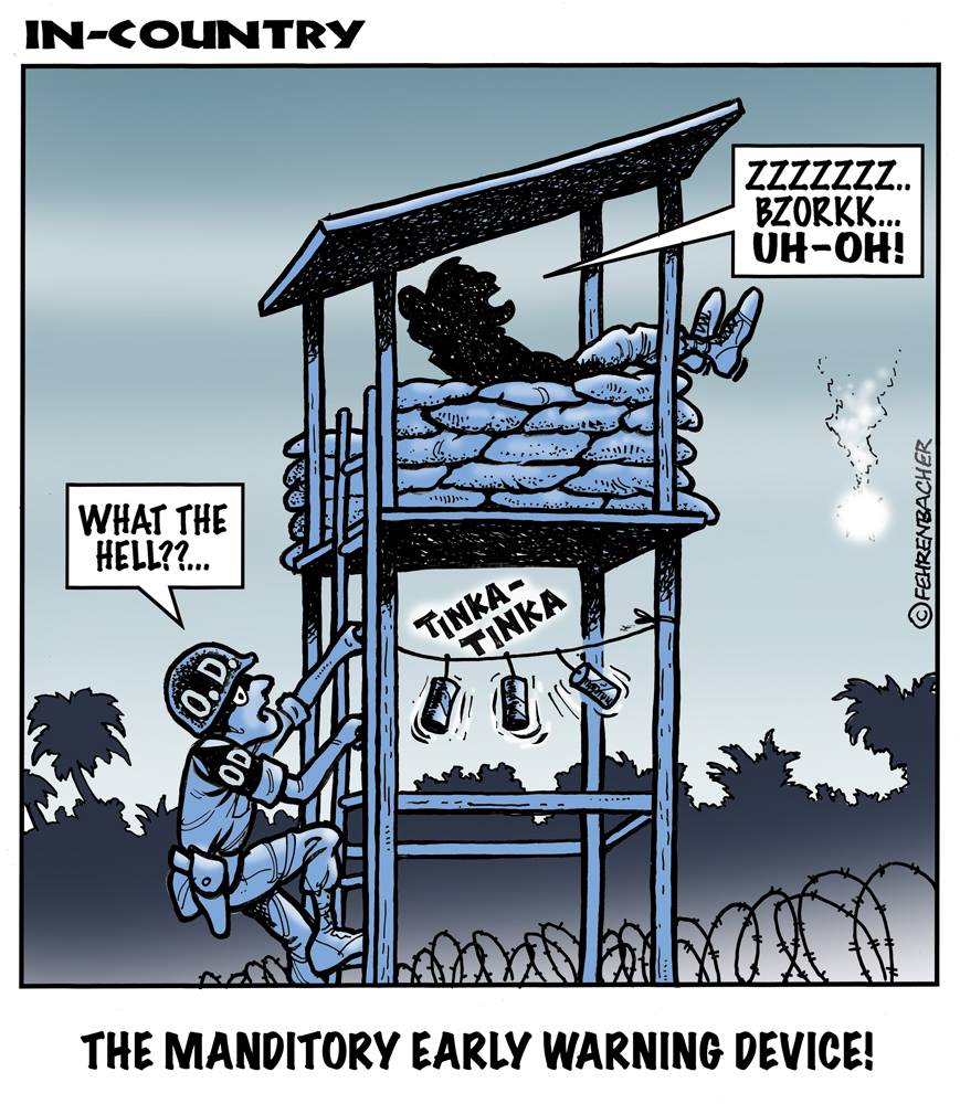 Phil enlisted in the Army in 1965 where you served for years in Vietnam. He became a graphic designer and has worked for the state of Oregon for 26 years. He retired in 2003 and started the Cartoon "In-Country". The cartoons reflect his experiences during his tour of duty in South Vietnam.