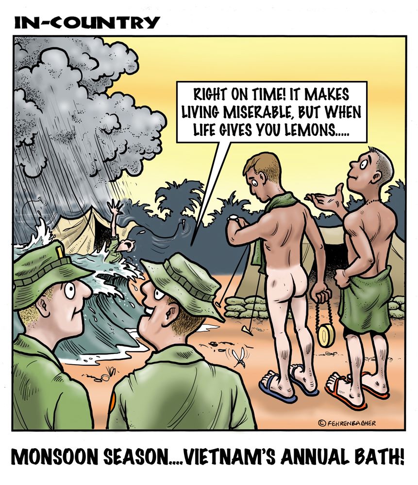 Phil enlisted in the Army in 1965 where you served for years in Vietnam. He became a graphic designer and has worked for the state of Oregon for 26 years. He retired in 2003 and started the Cartoon "In-Country". The cartoons reflect his experiences during his tour of duty in South Vietnam.